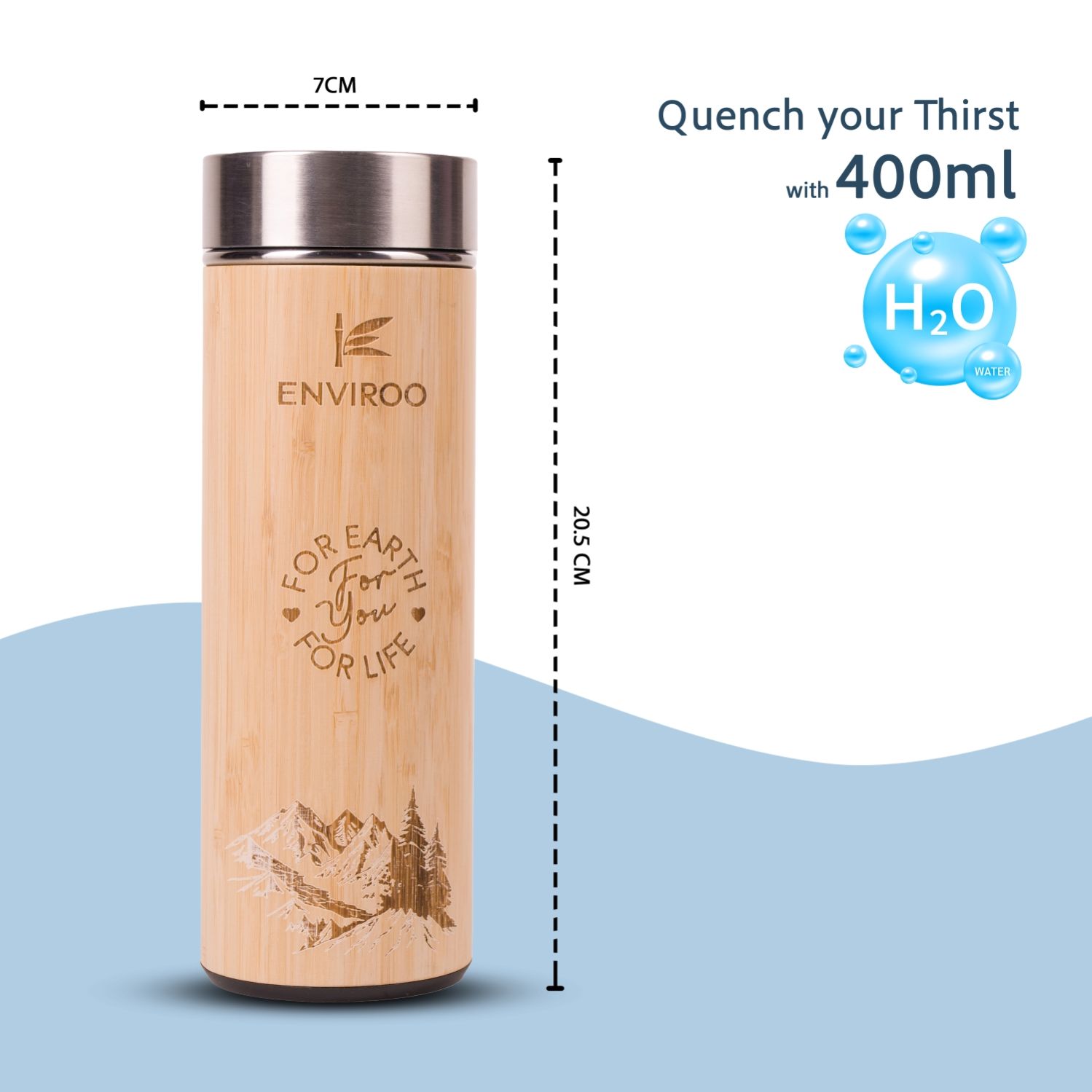 Upgrade your hydration routine with the Enviroo Bamboo Bottle (400ml)—a perfect