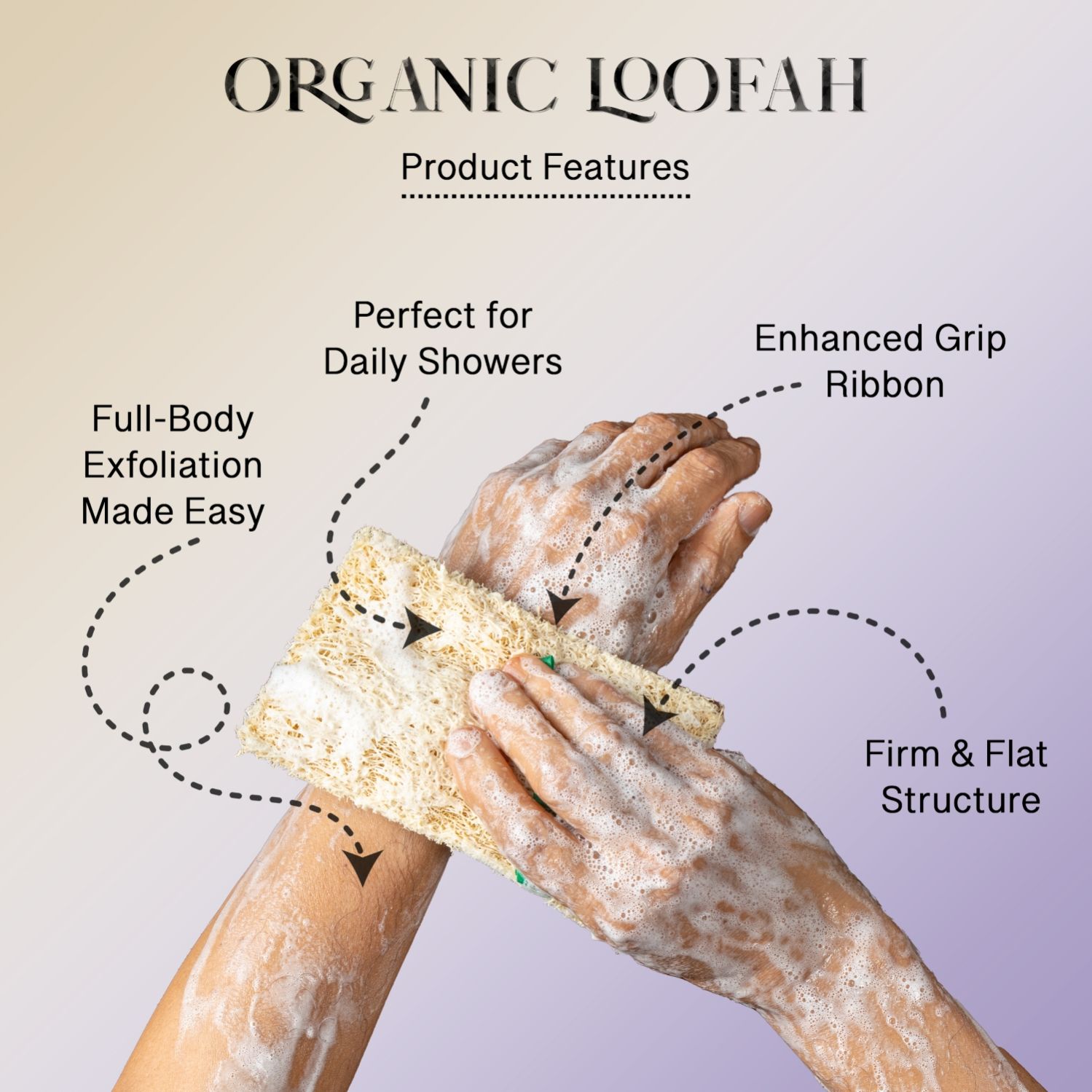 removes dead skin and tan, promoting a healthy glow. Made from pure loofah fibers, it
